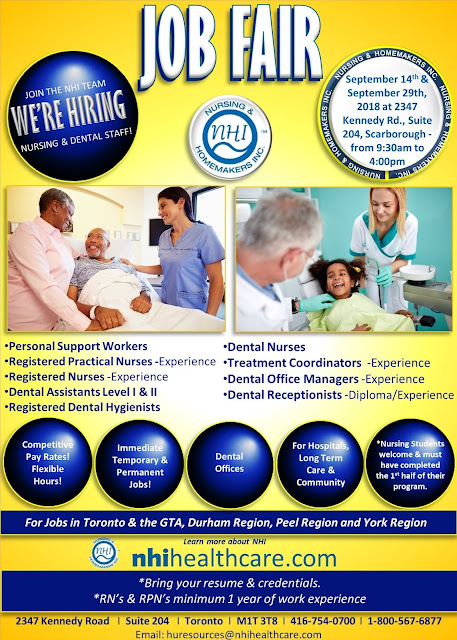 Register with our agency for full-time or temporary assignments in dental clinics in Toronto & the GTA. *We offer competitive pay rates Our Dental Division has the following immediate, top-paying positions based on experience for; • Registered Dental Hygienists • Certified Dental Assistants Level I & II - Full-time - Monday to Saturday - 30 to 35 hours per week - Temporary - Monday to Sunday - Flexible hours Please call NHI by calling 416-754-0700 from Monday to Friday between 9:00 AM to 5:00 PM or email your resume to zorena@nhihealthcare.com to arrange an interview.